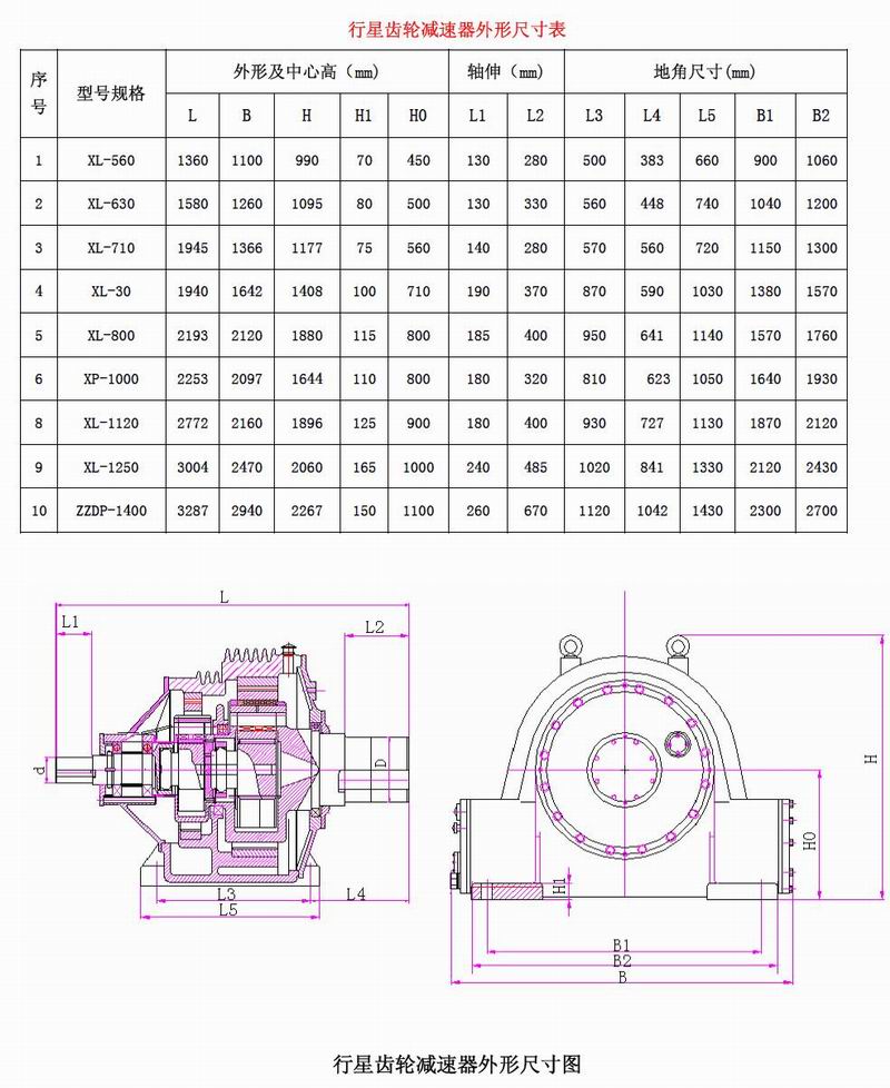 行星齒輪減速器技術(shù)參數(shù)表